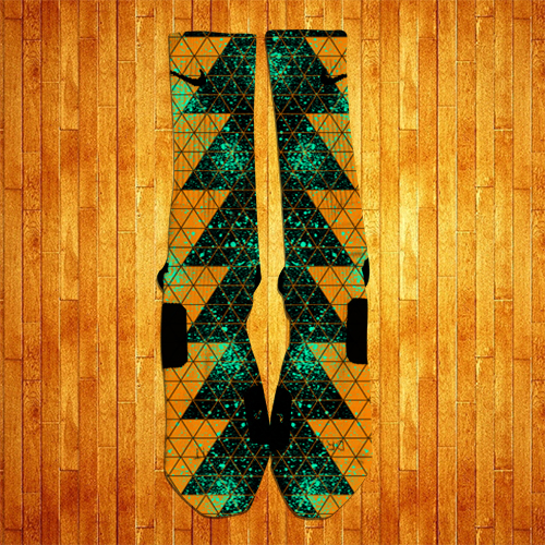 Inspired by the KDVI Texas, where KD spent his Freshman year in college terrorizing the NCAA, these socks sport a Burnt Orange and Black colorway accented with Mint ink splashes.