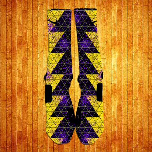 Inspired by the KDVI Peanut butter and Jellys, these socks sport a Yellow and Black colorway mired with Dark Purple ink splatters.