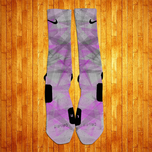 Inspired by the Lebron XI Terracota Warriors, these socks sport a Light Grey, Dark Grey and Purple prism style design accented with Dark Grey Splatters.