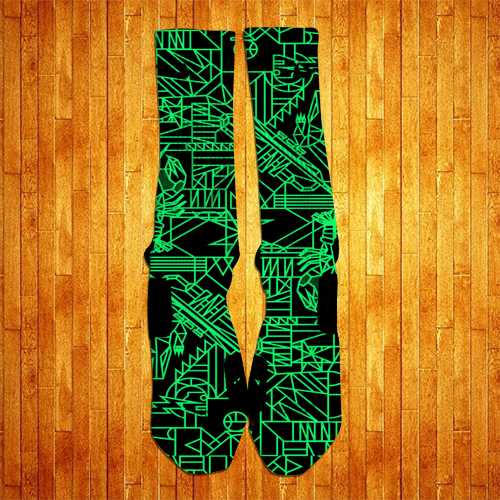 Inspired by the Nike NOLA Gumbo League Pack, these Black socks sport a Mint (Green Glow) graphic inspired by New Orleans, the host of the 2014 NBA All Star Game.