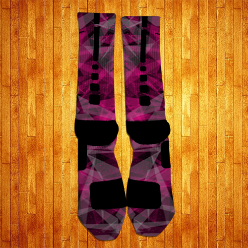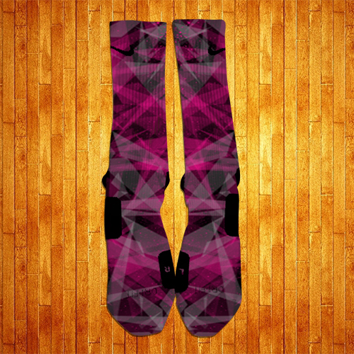 Inspired by the Lebron XI Miami Nights, these socks sport a Black, Pink and Grey prism style design accented with Pink Splatters.