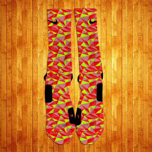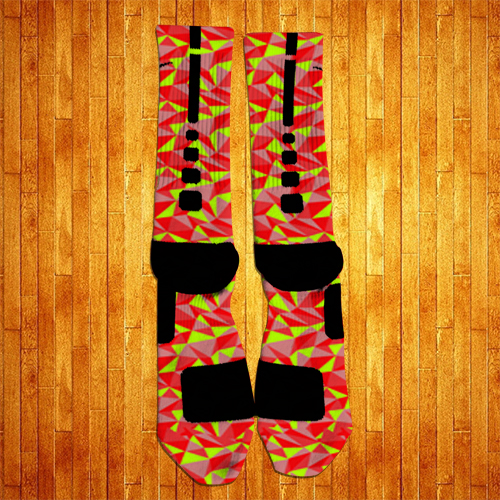 Inspired by the Nike Air Max 90 Ice, these socks rock a diamond graphic featuring different shades of Red and Lime Green.