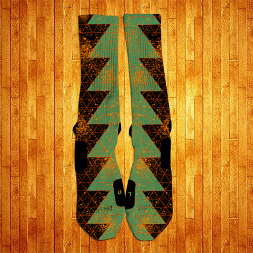 Inspired by the KDVI Neutral, these socks rock a Black and MIca Green colorway, accented by deep Orange splatters and a lighter Orange grid.
